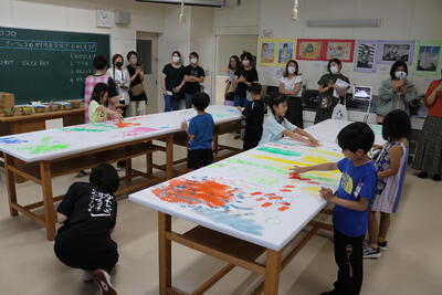 1年生 みんなで絵の具を使った作品づくりをしました。