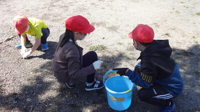 4年生 学年体育です。キックベースで汗を流しました。